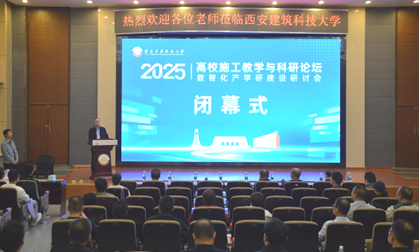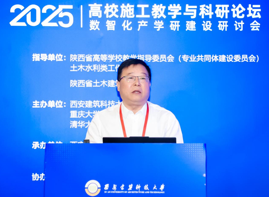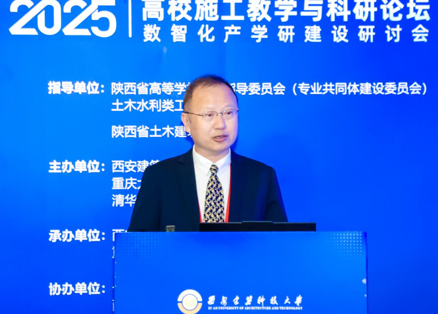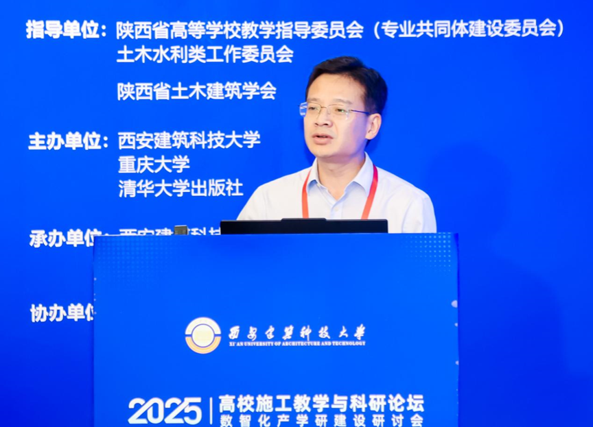 2025年9月19日至21日,由西安建筑科技大学、重庆大学、清华大学出版社主办,西安建筑科技大学土木工程学院和重庆大学土木工程学院承办的2025高校施工教学与科研论坛数智化产学研建设研讨会在西安召开。百余名专家学者齐聚一堂,探讨在数智化转型背景下,土木工程施工领域所面临的新机遇与新挑战,共同推动土木工程施工技术的进步与发展。