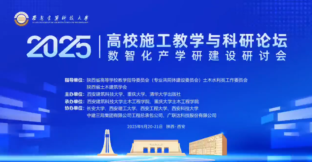 2025年9月19日至21日,由西安建筑科技大学、重庆大学、清华大学出版社主办,西安建筑科技大学土木工程学院和重庆大学土木工程学院承办的2025高校施工教学与科研论坛数智化产学研建设研讨会在西安召开。百余名专家学者齐聚一堂,探讨在数智化转型背景下,土木工程施工领域所面临的新机遇与新挑战,共同推动土木工程施工技术的进步与发展。开幕式西安建筑科技大学副校长刘晓武,重庆大学土木工程学院党委书记谢强在开幕式致辞。开...